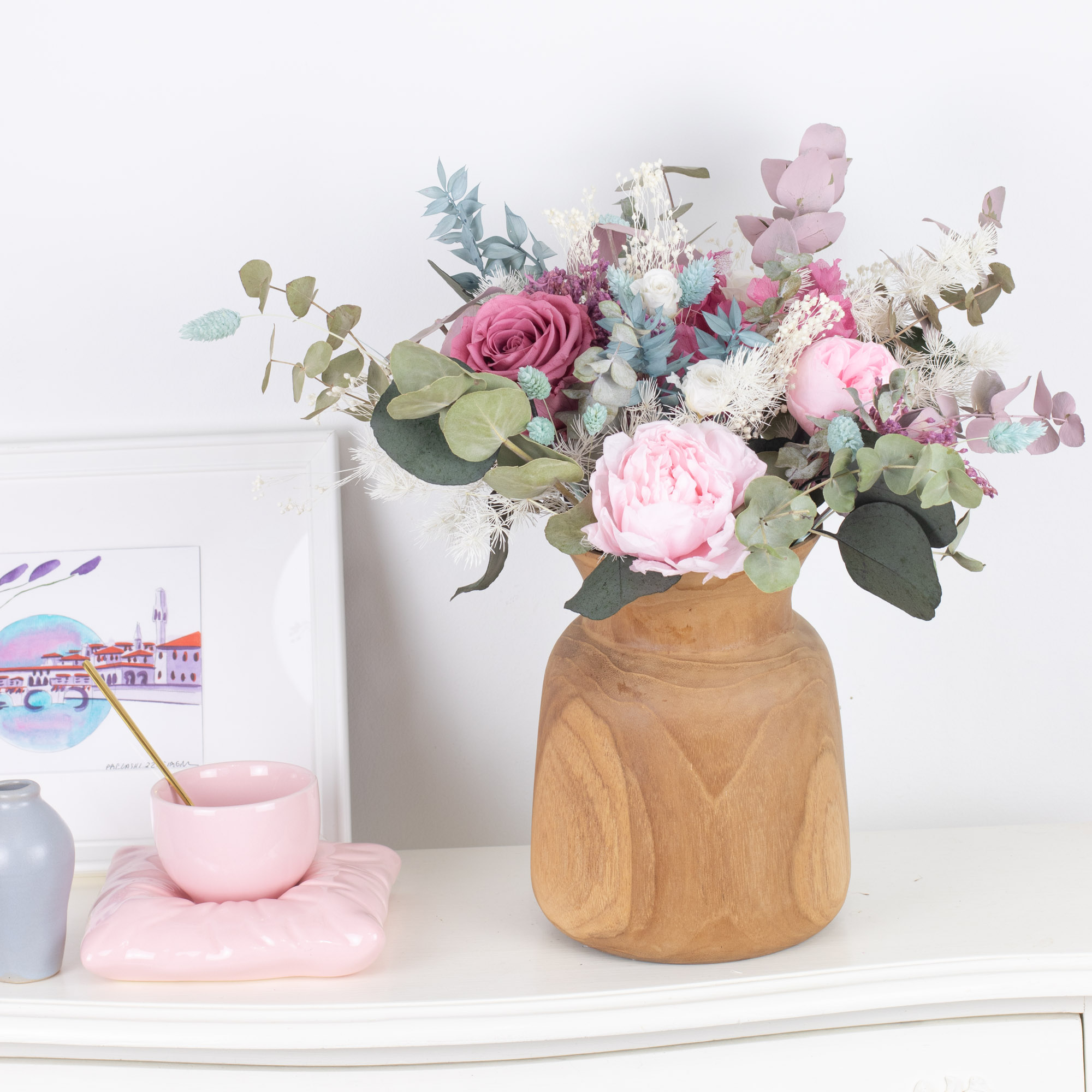 Elige uno de nuestros arreglos florales para eventos, como nuestros ramos de flores preservadas o nuestra decoración floral para bodas y contacta con nosotras para decirnos qué necesitas.