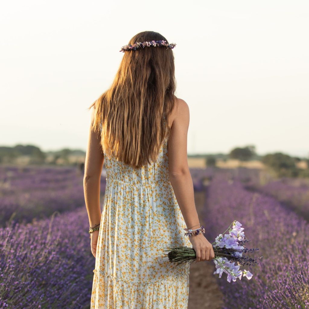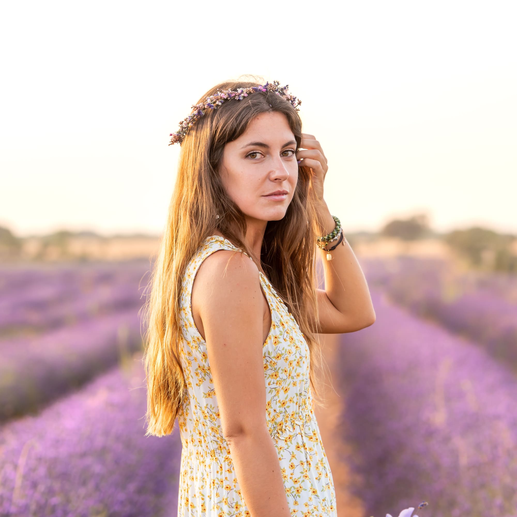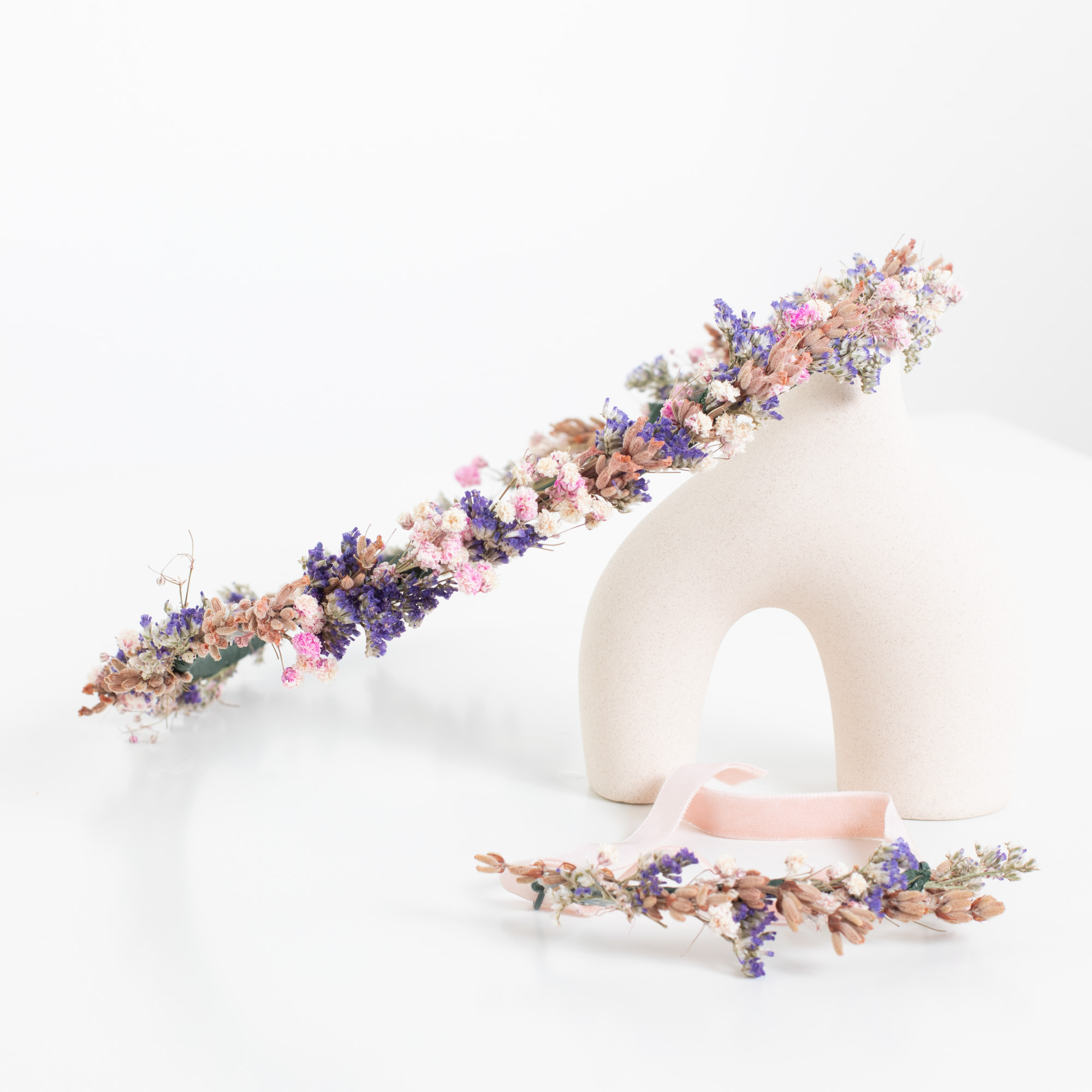La corona Provenza, con delicadas y preciosas flores de lavanda, combina muy bien con cualquier estilo y es muy romántica.