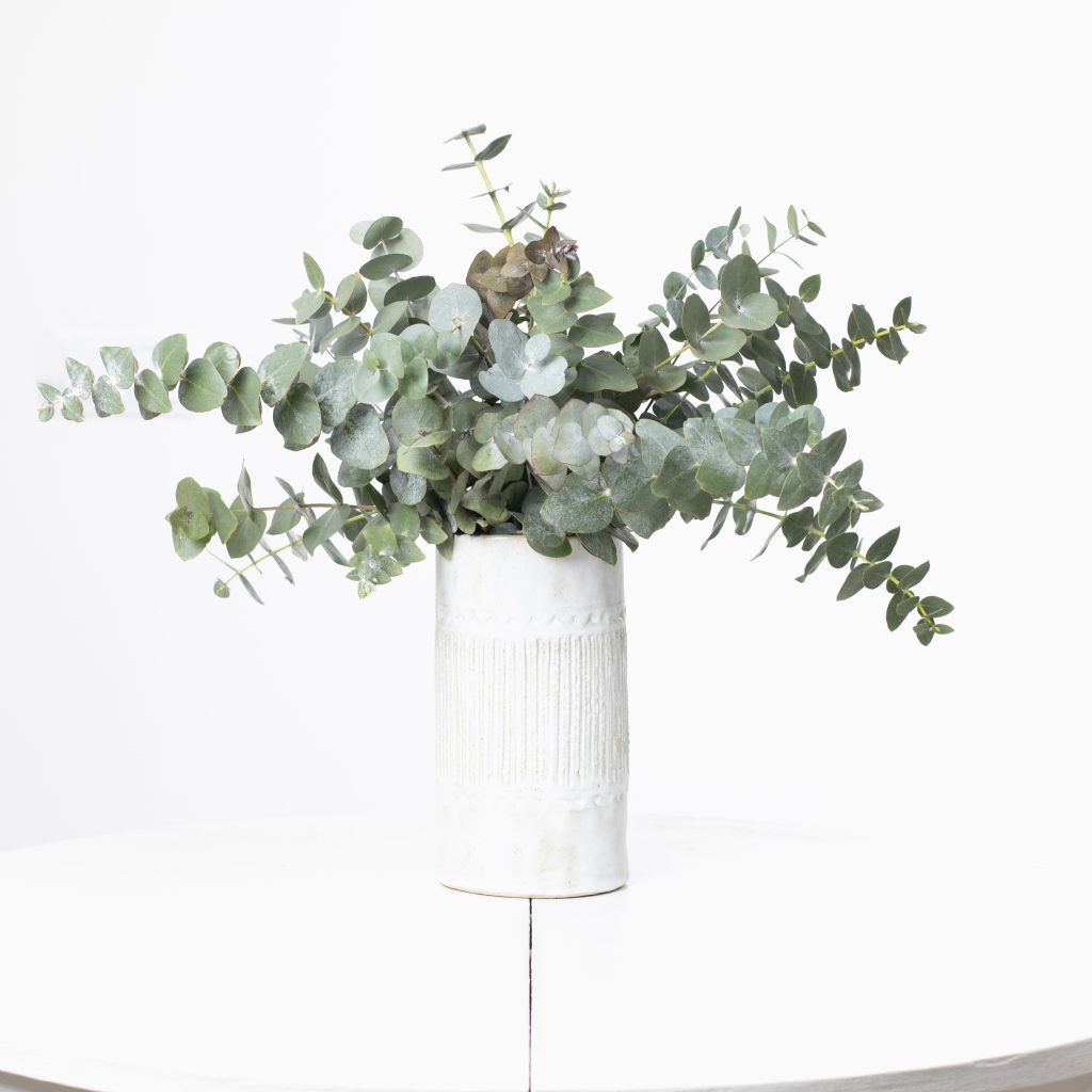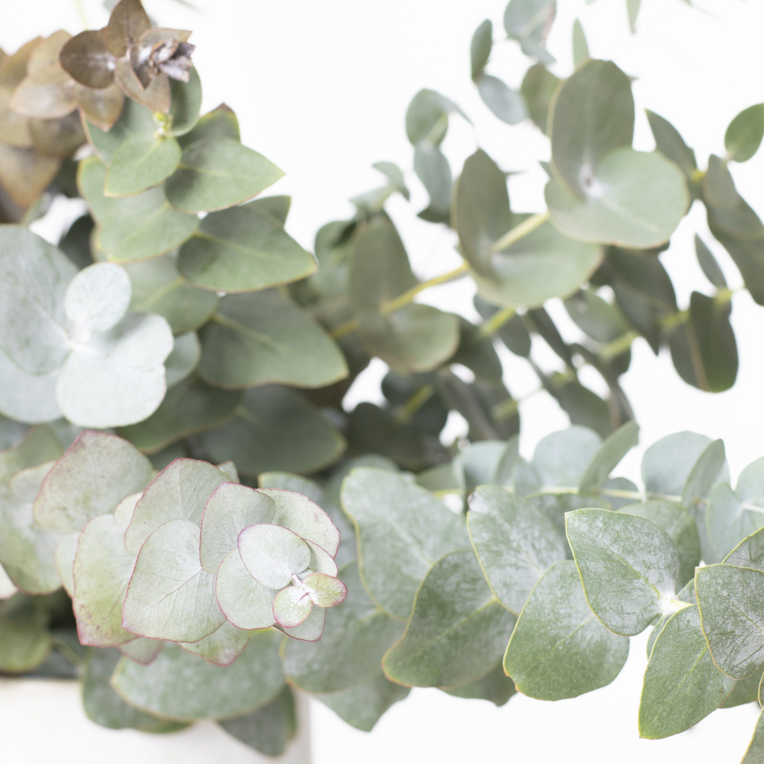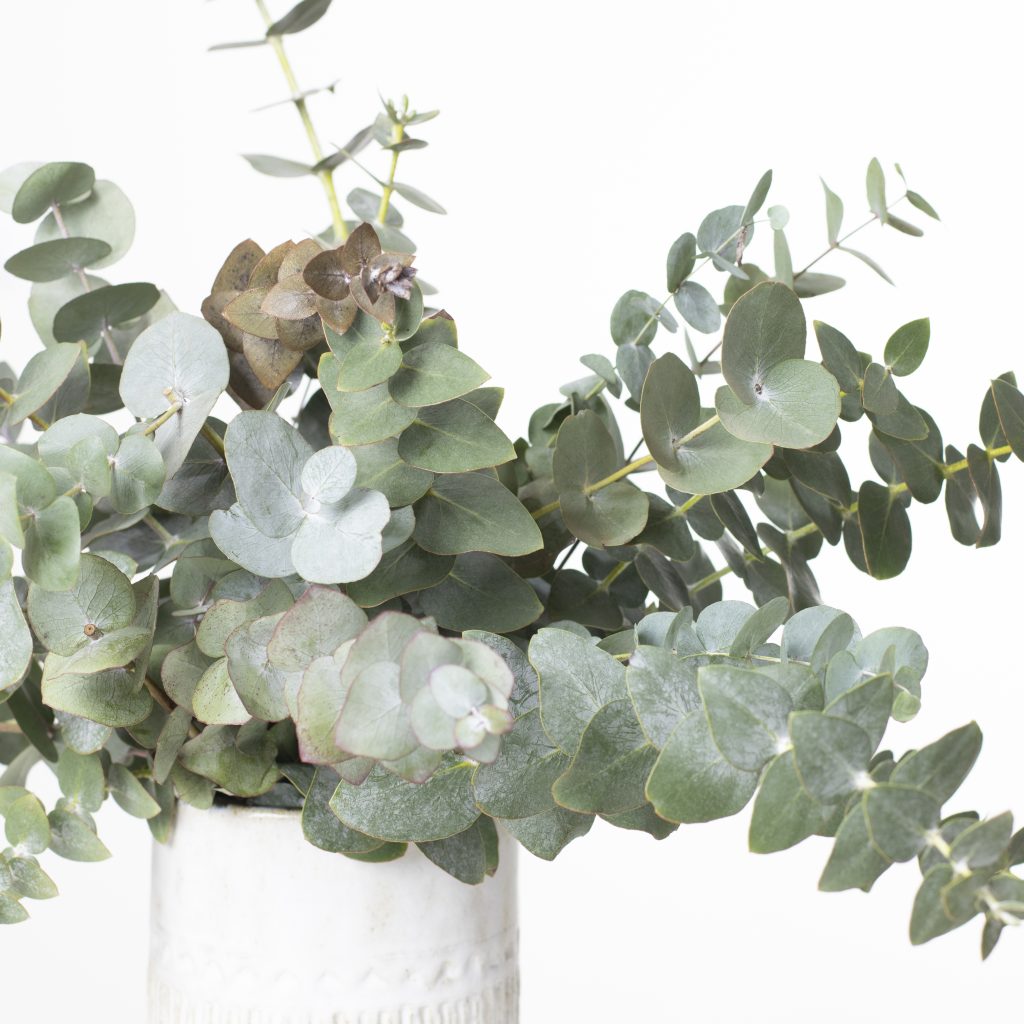 Aromático y muy moderno. El eucalipto se ha convertido en un básico en el diseño floral actual. Por su versatilidad, combina muy bien en estilos muy diferentes.