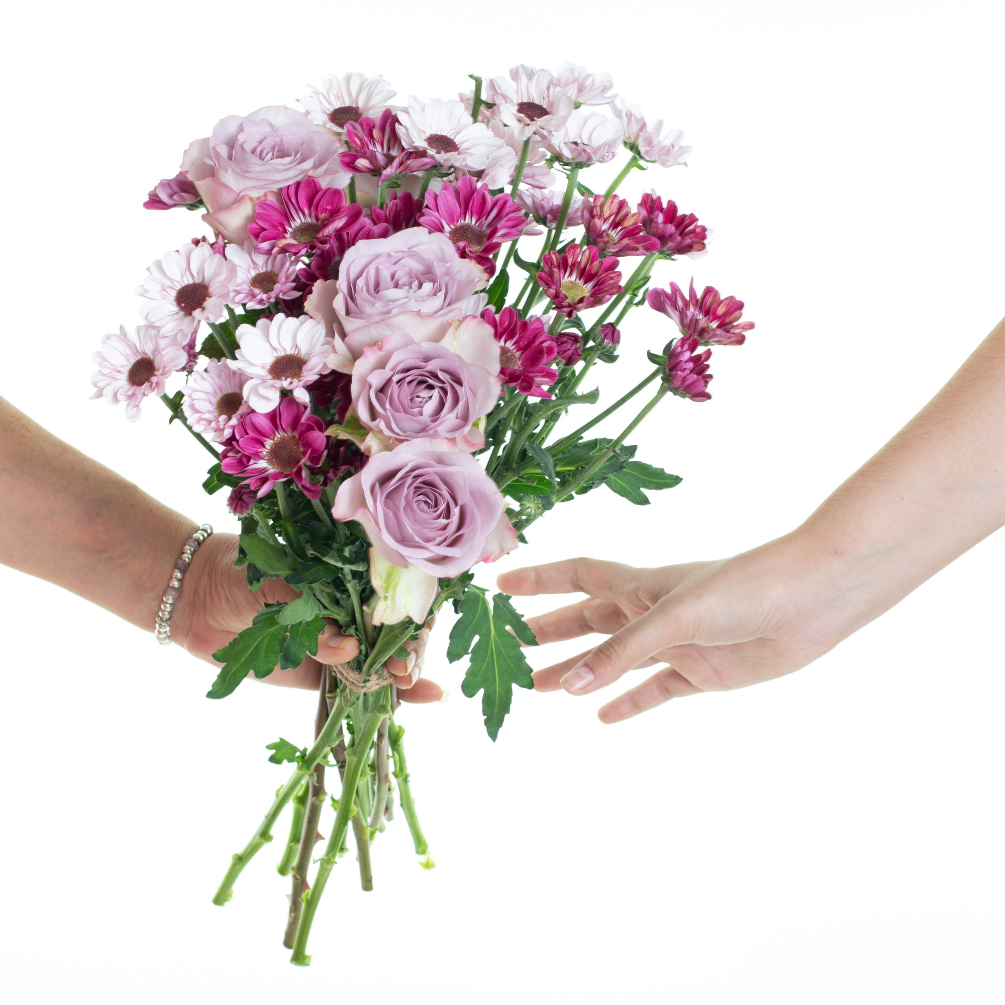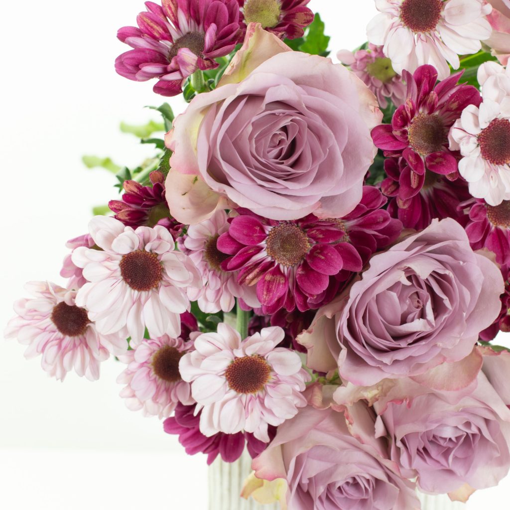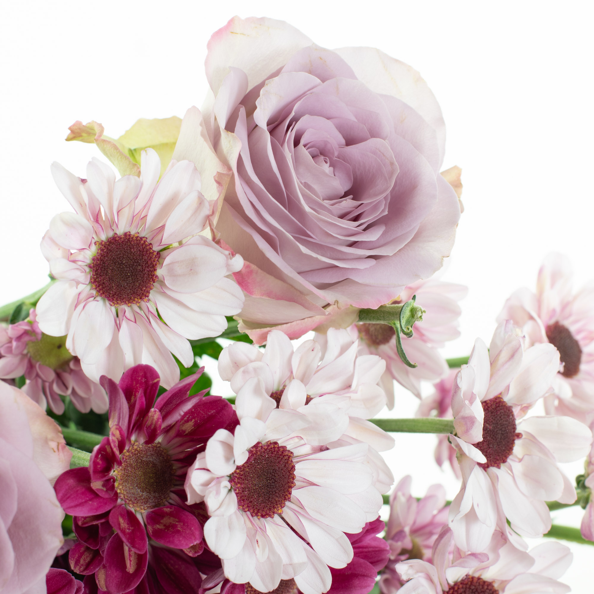 En función de las flores de cada temporada, combinaremos claveles con rosas spray y margaritas. Seleccionamos las variedades disponibles en el momento de recibir tu pedido, para que lleguen frescas a tu casa y te duren mucho más. El diseño final puede variar ligeramente respecto de las imágenes, pero siempre utilizaremos esas tonalidades.